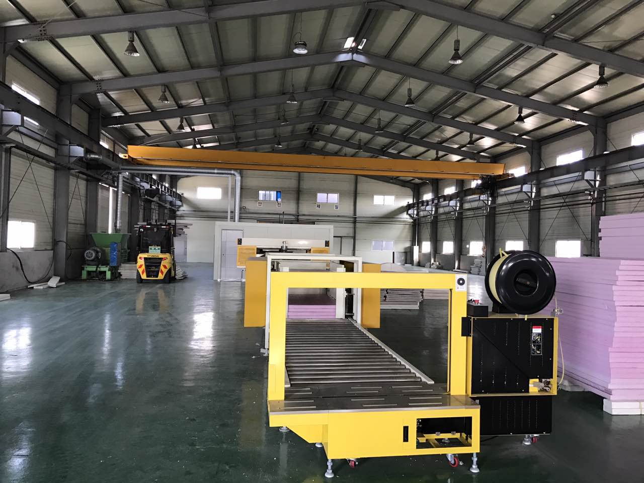 產(chǎn)品主打二氧化碳(CO2)擠塑板生產(chǎn)線、改性聚苯板生產(chǎn)線等發(fā)泡設(shè)備,及相關(guān)回收機(jī)、自動(dòng)切割、自動(dòng)打標(biāo)、自動(dòng)打包等相關(guān)輔機(jī)。
